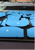 2. 做好每一件“小事” 裁剪时的小麻烦总让人头疼:磨刀得专门停机,既耽误生产进度又影响裁切一致性;蓬松软性面料才脱离真空吸附,就回弹移位,导致裁片不准;复杂印花面料的图案细节难对齐,颜色相近的花纹还容易切偏,白白浪费材料。